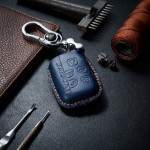 Bao Da Chìa Khóa LandRover 2015 5 Nút Dạng Hộp Da Bò Nappa Xanh Navy