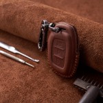 Bao Da Chìa Khóa Ô Tô Handmade Hyundai Elantra 2019 Da Bò Sáp Nâu Cafe