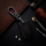 Bao Da Chìa Khóa Ô Tô Hyundai Santafe IX45 3 Nút Dạng Hộp Da Bò Nappa Màu Đen