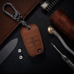 Bao Da Chìa Khóa Ô Tô Kia Morning 2018 2 Nút Da Bò Dạng Hộp Màu Nâu Bò