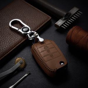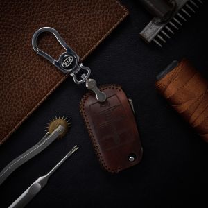 Bao Da Chìa Khóa Ô Tô Kia Optima 4 Nút Dạng Hộp Da Bò Sáp Nâu Bò