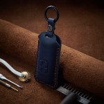 Bao Da Chìa Khóa Ô Tô Mazda 2 2 Nút Dạng Dẹp Da Bò Nappa Màu Xanh Navy
