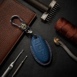 Bao Da Chìa Khóa Ô Tô Nissan Juke 3 Nút Dạng Dẹp Da Bò Sáp Xanh Dương