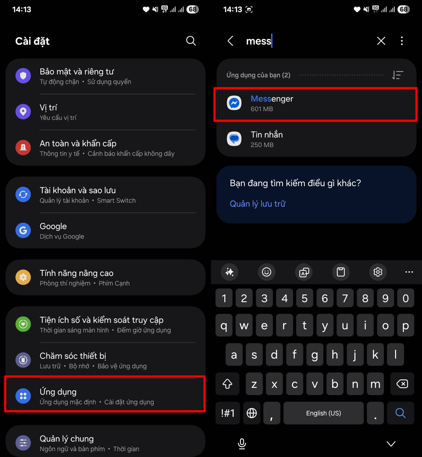 Bước 1: Vào Cài đặt trên điện thoại > Chọn mục Ứng dụng > Chọn tiếp vào ứng dụng Messenger.