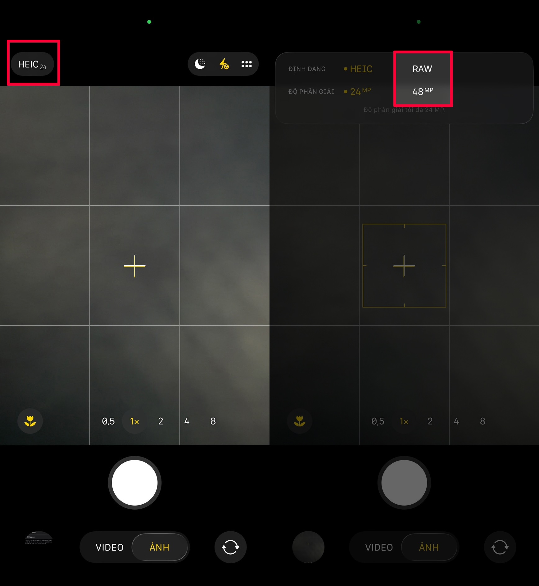 Dòng iPhone hỗ trợ ProRAW (như iPhone 17 Pro/Pro Max, iPhone 16 Pro/Pro Max, iPhone 15 Pro/Pro Max…) cho phép bạn chọn độ phân giải ảnh ProRAW mặc định: 12 MP, 48 MP hoặc HEIF 48 MP.