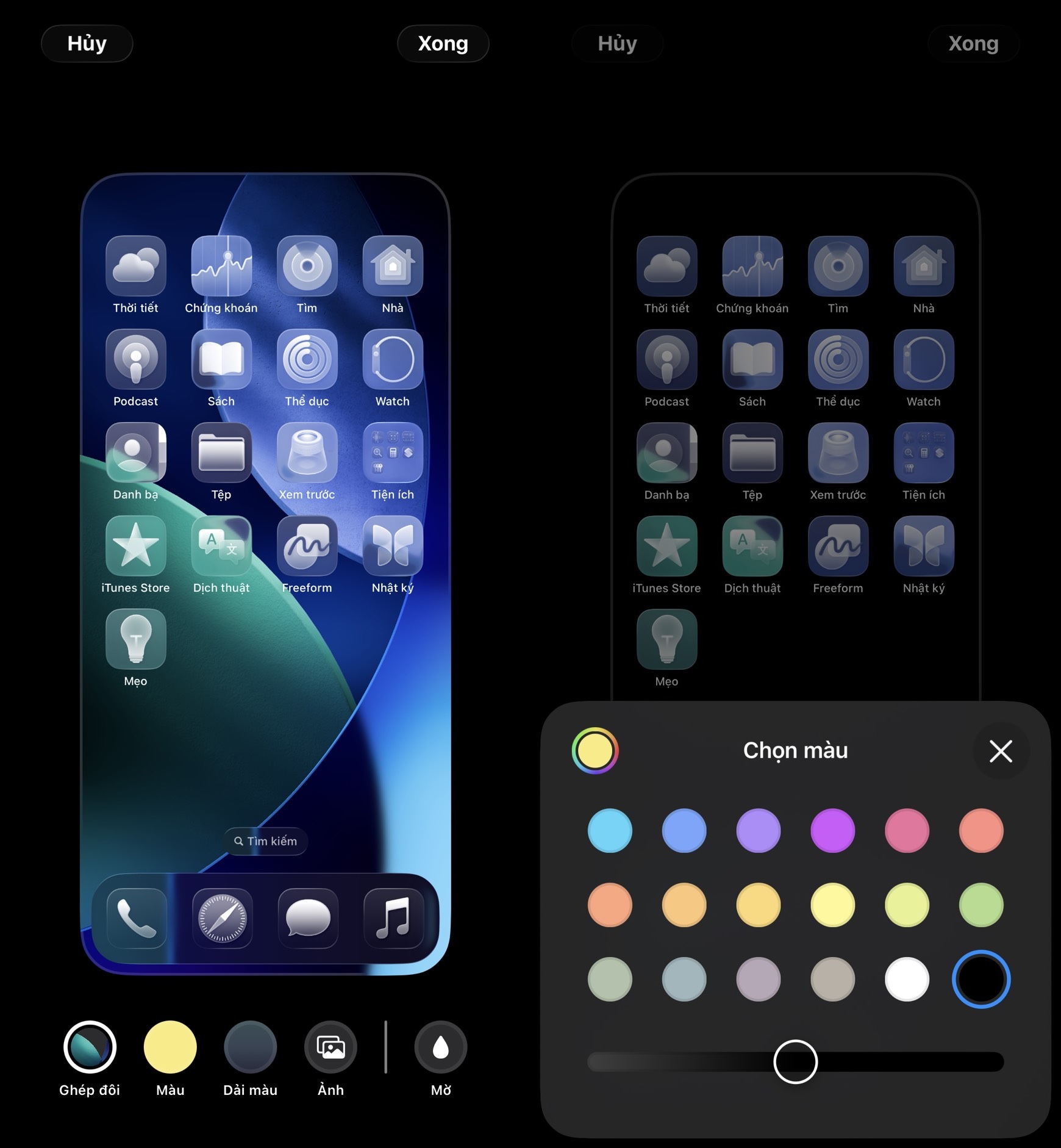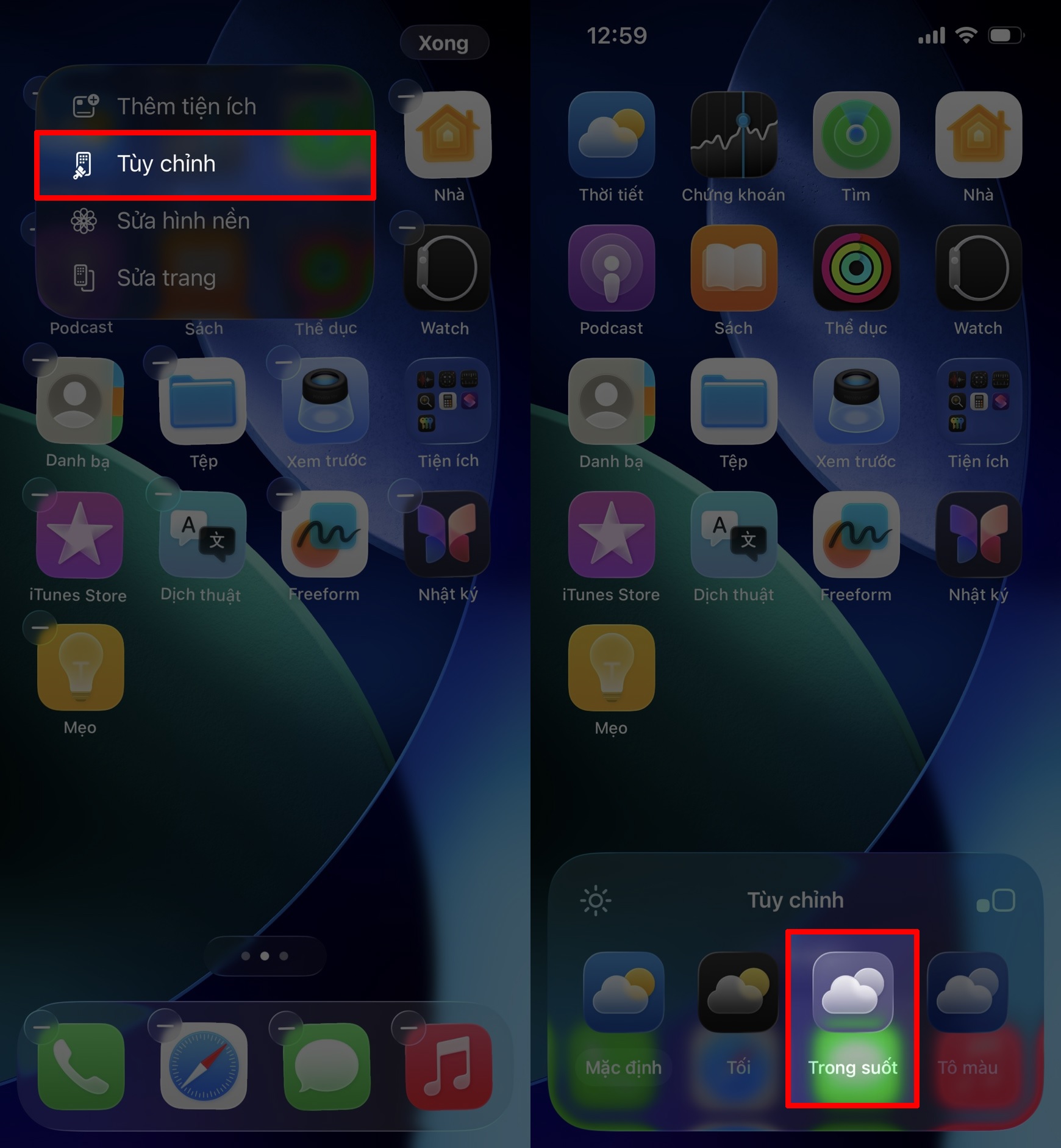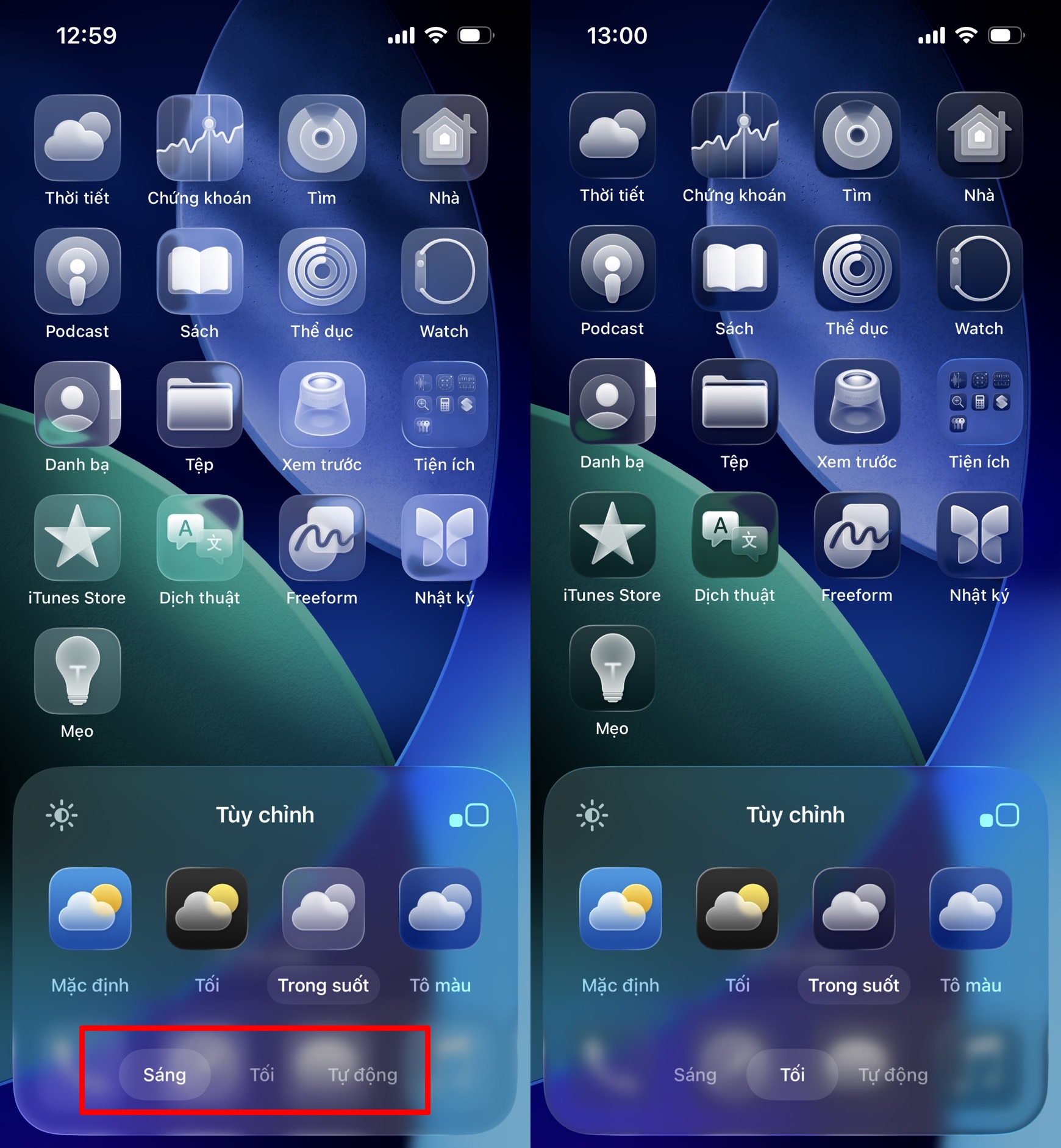 Cách bật icon trong suốt trên iOS 26