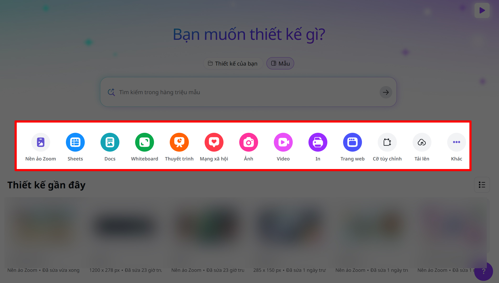 Bước 1: Mở Canva trên máy tính lên > Tạo một thiết kế mới hoặc mở bản thiết kế mà bạn muốn chèn thêm đồ họa bằng AI. Bạn có thể chọn bất kỳ kích thước nào tùy nhu cầu.