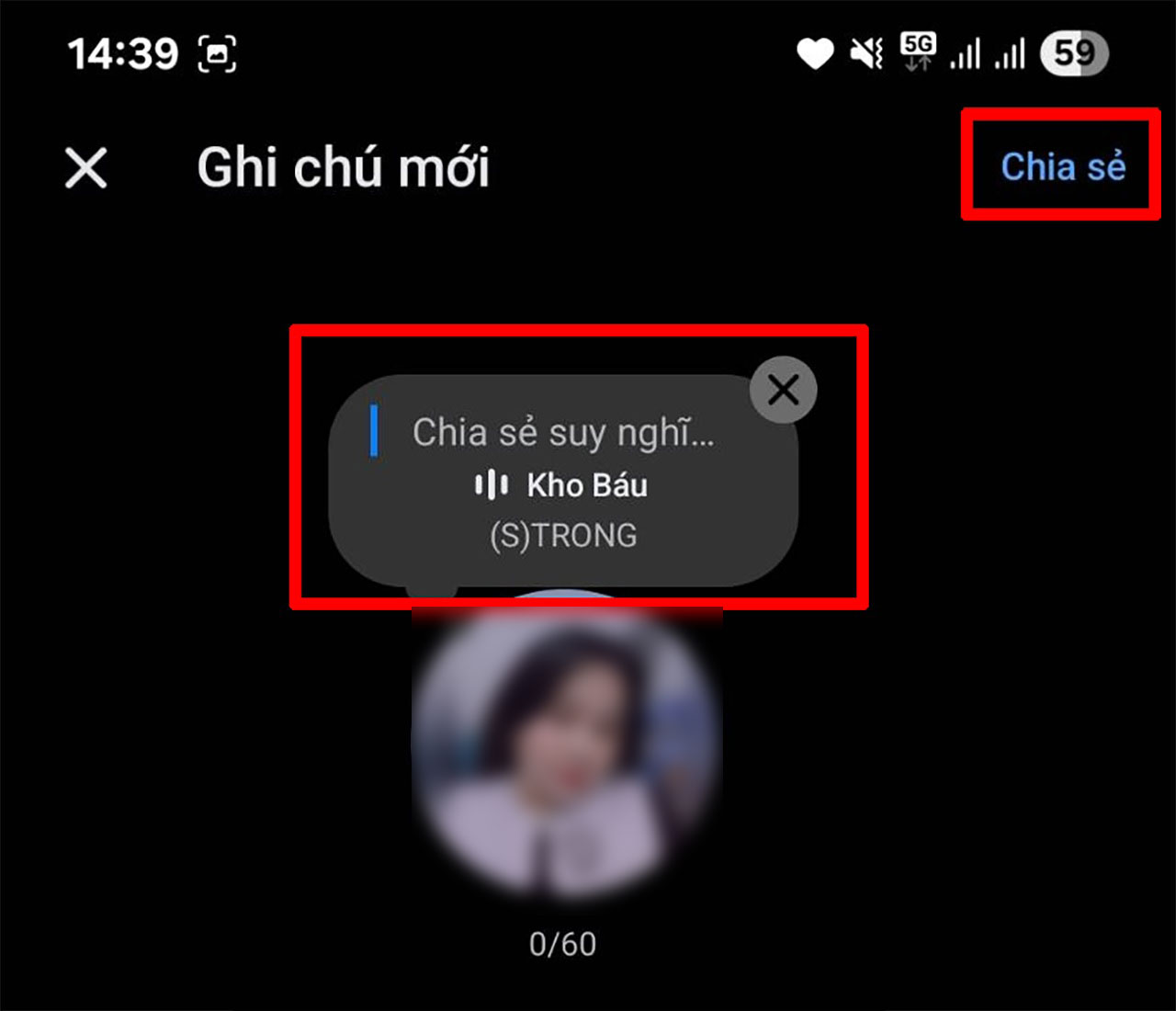 Bước 4: Chọn xong, bạn nhấn Chia sẻ để đăng ghi chú có nhạc lên đầu trang cá nhân. Ghi chú này sẽ hiển thị công khai trong 24 giờ.