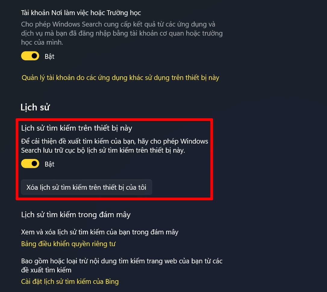 Cách xóa lịch sử tìm kiếm trên Search Bar Windows 11