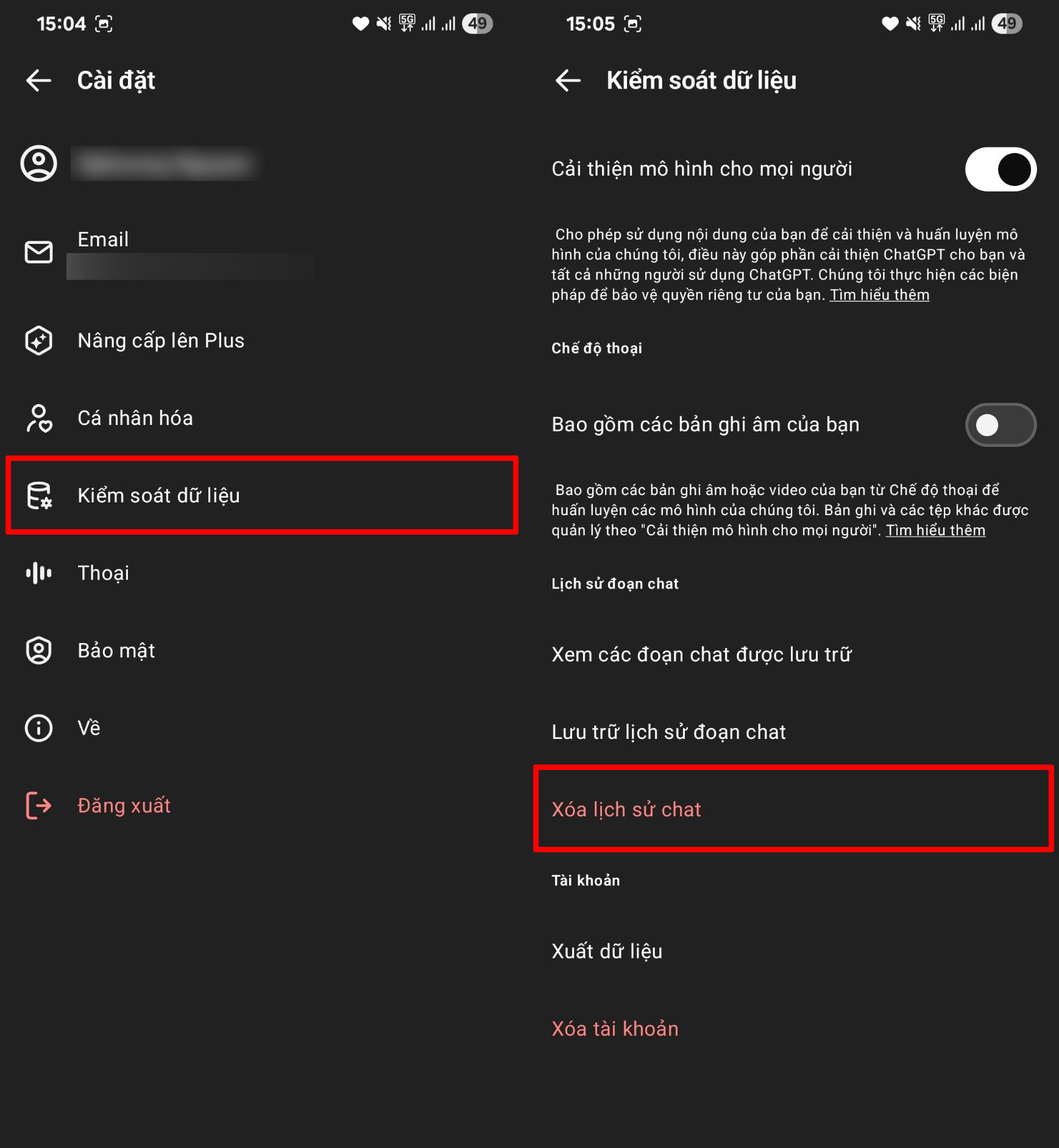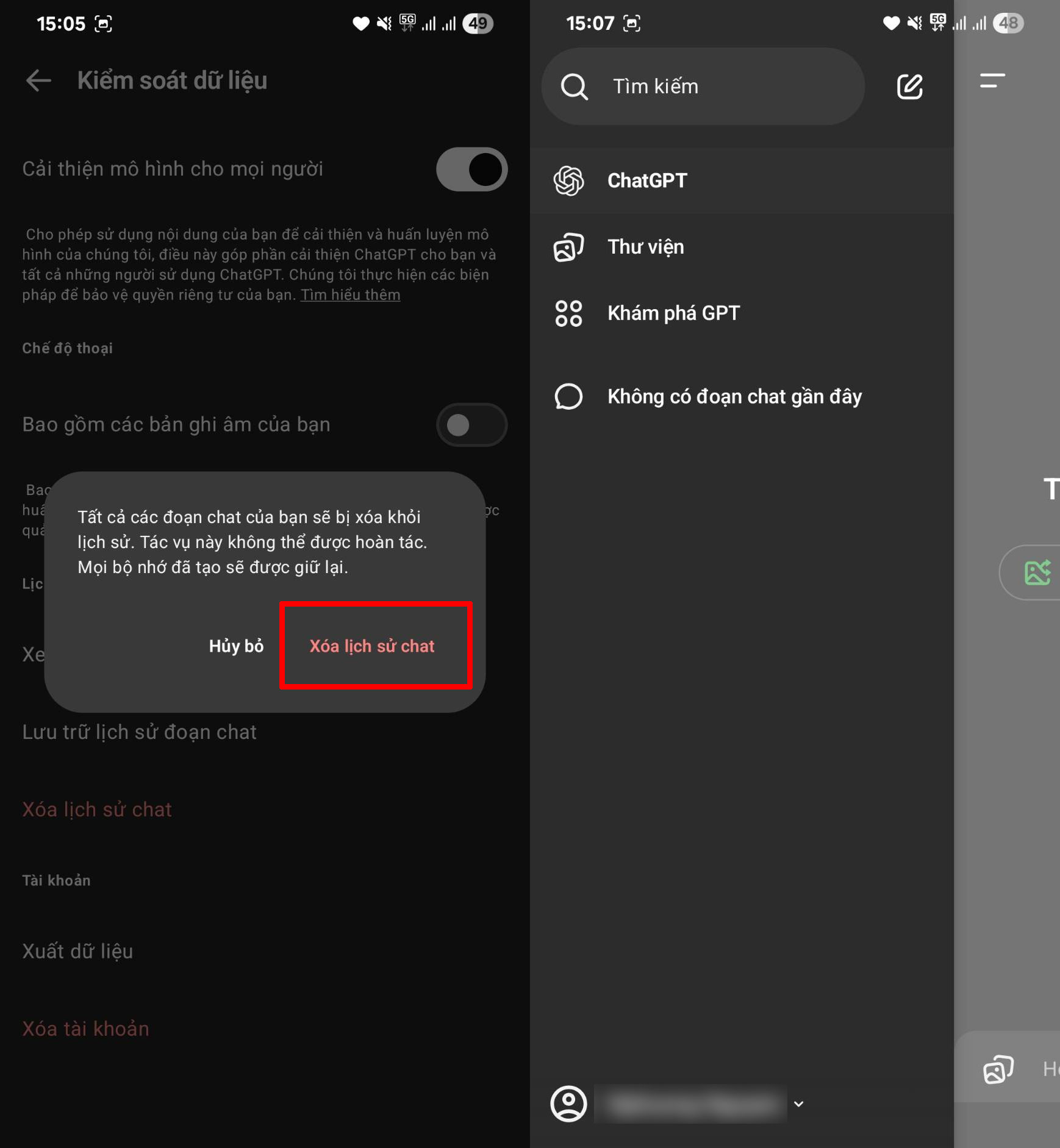 Cách xóa tất cả lịch sử chat trên ChatGPT trên điện thoại
