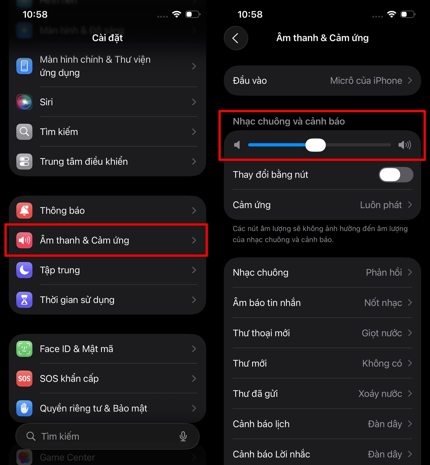Mở Cài đặt → Âm thanh & Cảm ứng.