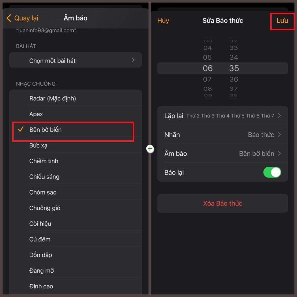 Bấm Sửa → chọn báo thức bạn muốn thay đổi.