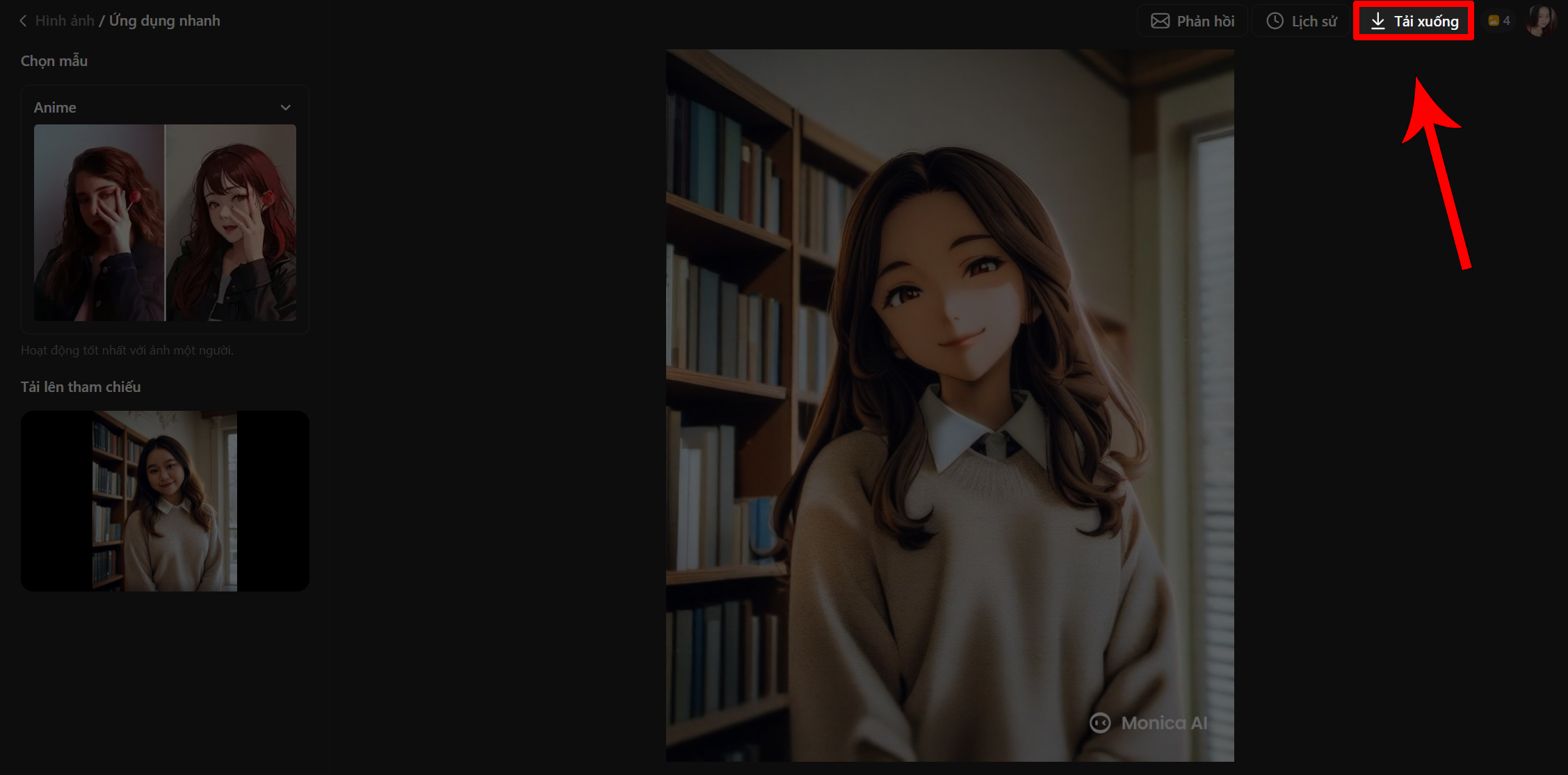 Bước 6: Khi đã tạo được tấm ảnh ưng ý, bạn nhấn vào biểu tượng Tải xuống ở góc phải trên cùng để lưu ảnh về máy tính. Vậy là hoàn tất quá trình rồi nhé.
