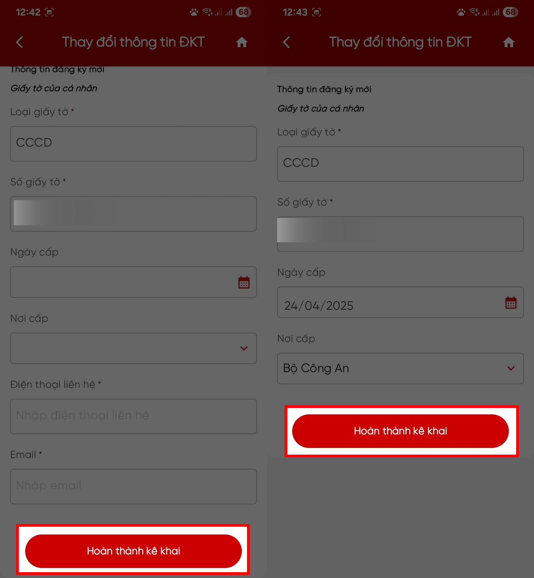 Bước 5: Sau khi hoàn tất bạn hãy nhấn chọn mục Hoàn thành kê khai > Nhập mã OTP được Tổng cục Thuế gửi về số điện thoại đã đăng ký để hoàn tất xác nhận. Nếu mọi thông tin hợp lệ, yêu cầu của bạn sẽ được xử lý trong thời gian ngắn.