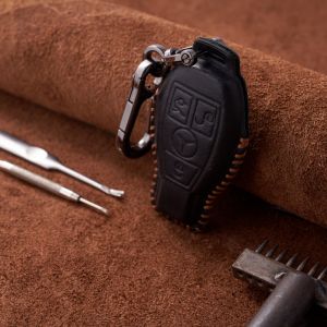 Bao Da Chìa Khóa Ô Tô Handmade Mercedes GLC 200/250/260/300 Da Bò Pullup Màu Đen