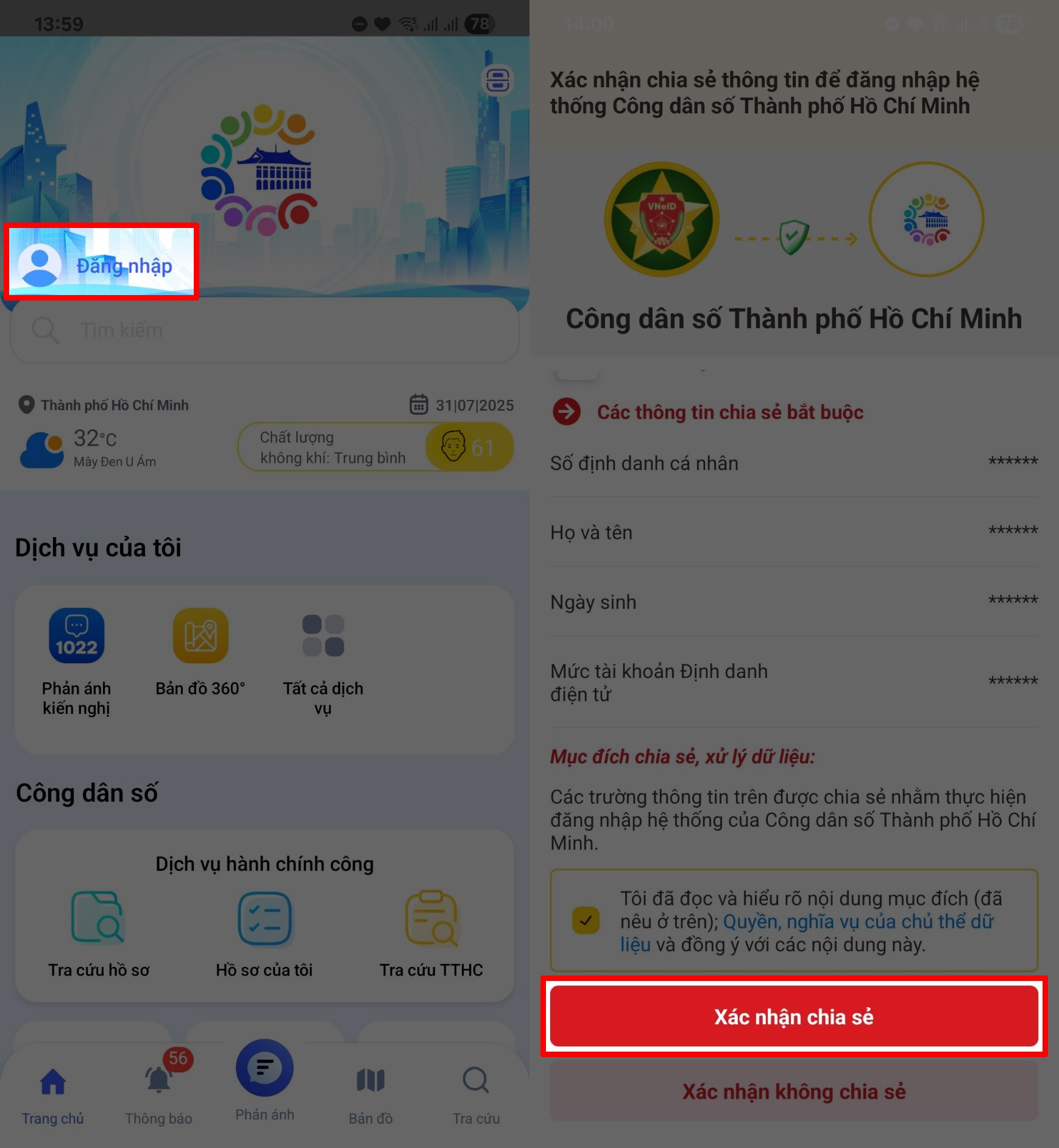 Sau khi tải xong, bạn đăng nhập tài khoản để sử dụng. Có thể đăng nhập bằng tài khoản VNeID để đăng nhập diễn ra nhanh chóng và dễ dàng hơn.