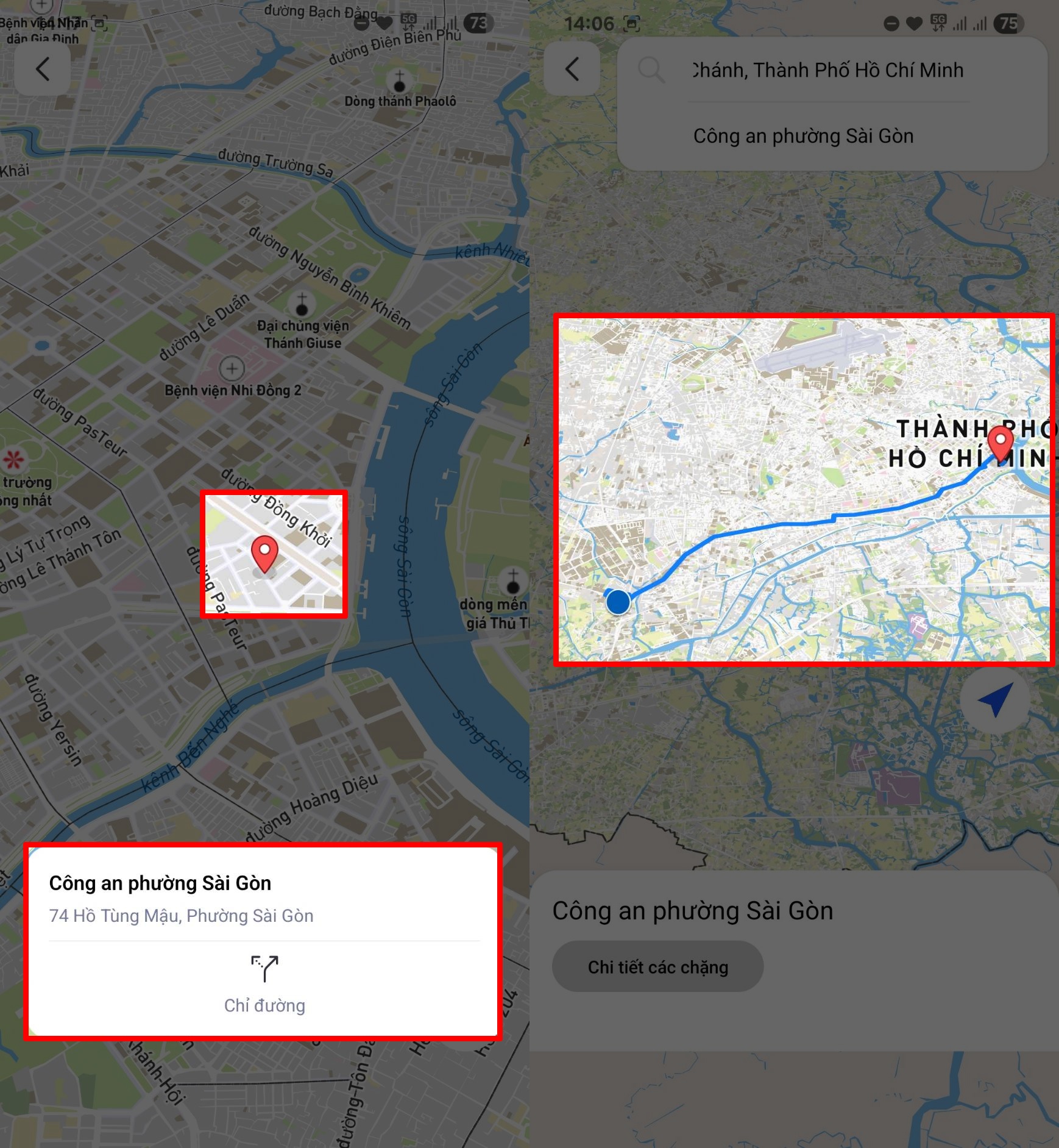Bước 4: Nhấn vào địa chỉ cơ quan công an phường mà bạn muốn tìm hiểu để xem chi tiết thông tin như tên đầy đủ, số điện thoại, địa chỉ cụ thể. Nếu bạn muốn di chuyển đến cơ quan công an, hãy nhấn vào mục Chỉ đường. Ứng dụng sẽ tự động mở bản đồ và dẫn đường để bạn dễ dàng đến đúng địa điểm.